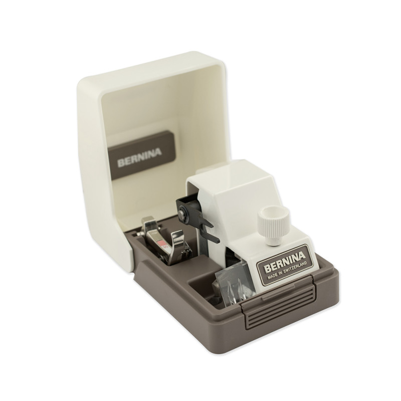 Кромкообрезатель предназначен для обработки и обрезки припусков за один приём. Может использоваться для оверлочного шва, притачивания кружев, косой бейки и т. д. Два ножа обрезают край, как при работе на оверлоке, а ткань в это время проходит под прижимной лапкой. Необходимая лапка №90 входит в комплект. Также её можно приобрести отдельно.