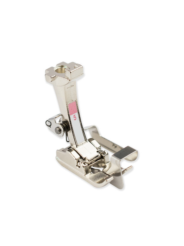 Эта лапка подходит практически для всех видов тканей, включая плотные и средние по толщине материалы. Её можно использовать с левой или правой позицией иглы, что делает её универсальной при обработке узких кромок. Лапка №5 станет незаменимым помощником при пошиве одежды и изделий для интерьера, позволяя добиться безупречного результата даже в самых деликатных проектах. Она особенно удобна для тех, кто ценит эстетичный и чистый внешний вид готовых изделий.