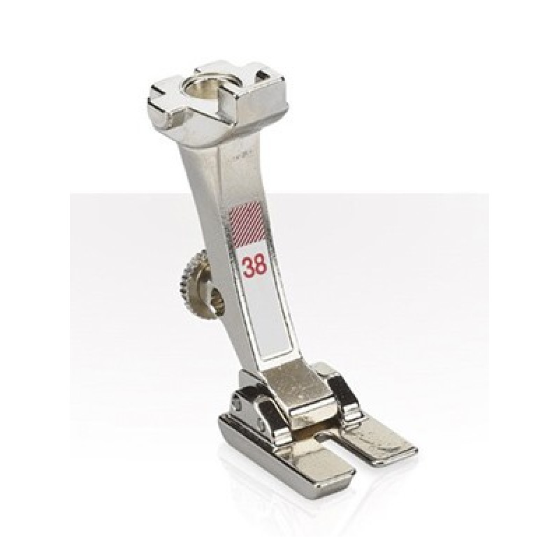 Лапка для выпушки Bernina №38 часто называется «неровной лапкой» благодаря асимметричной форме нижней поверхности. Благодаря этой особенности лапка идеально подходит для изготовления выпушек, а также для шитья по неровным слоям ткани.