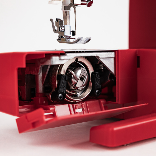 Выполняет 17 видов швейных операций, оснащена классическим вертикальным челноком, регулятором давления прижимной лапки и нитковдевателем нити в иглу. Комплектация машины расширена дополнительными лапками, иглами, нитками и полезными швейными принадлежностями.