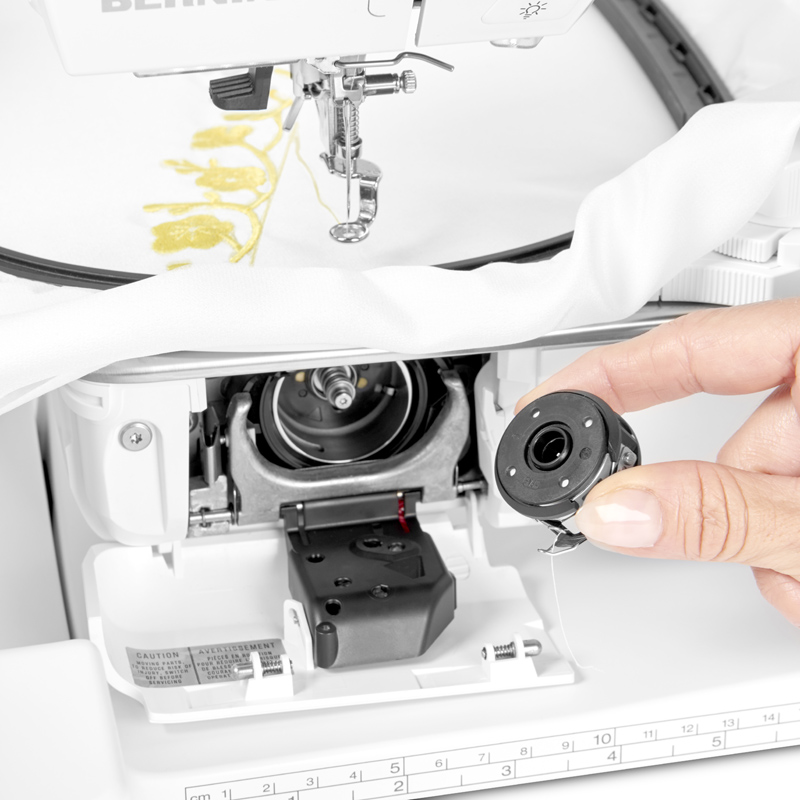 Новейший челнок BERNINA, быстрое и практически бесшумное вращение, макс. скорость вышивания до 1000 стежков в минуту.